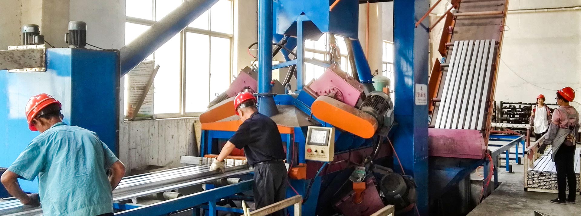 专业生产多种铝合金型材及制品的企业,已有二十多年的经验和历史。现有铝型材挤压设备四套,分别为1800T、1000T、630T、600T挤压生产配套设备有10m长不锈抛丸机。6m铝型材表面抛光机,4.5m普拉迪铝材加工中心,多台高精度自动切割机,双头转向切割机,备有12m长时效炉。